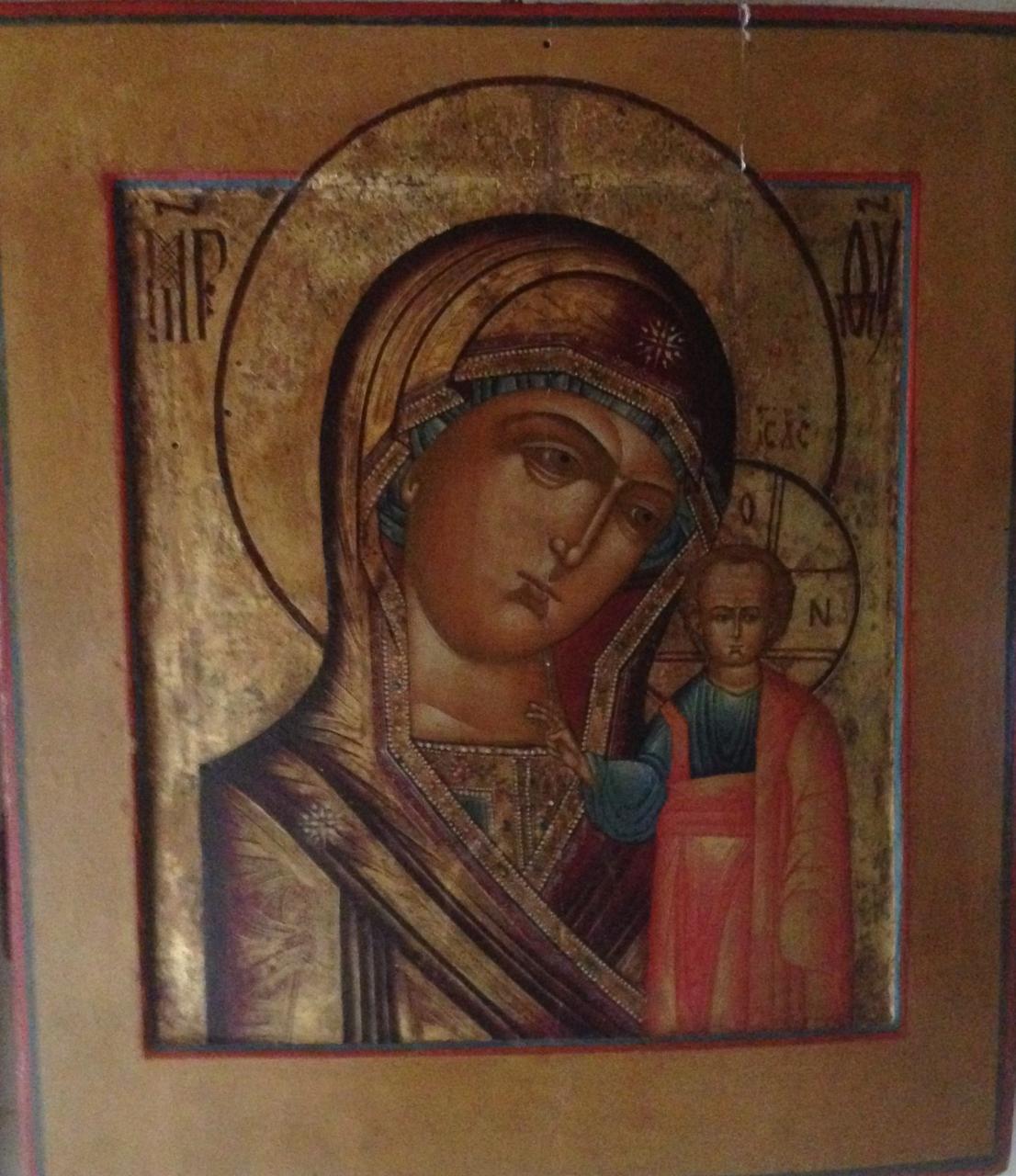 - NOTIZIE STORICO CRITICHE L'icona della Vergine di Kazan' è forse la più diffusa fra le immagini mariane russe. \nCome narrano le fonti, quest'immagine sacra apparve prodigiosamente attorno all'anno 1580 nella città di Kazan' (da cui prese appunto il nome), da poco convertita all'ortodossia dopo essere stata la roccaforte dei tatari, manifestandosi a una fanciulla e indicandole dove scavare per riportarla alla luce: "E quando ebbero scavato alla profondità di poco più di due braccia - oh prodigio! - apparve la miracolosa icona della nostra Signora, la Vergine Maria, la Sua venerata Odigitria, con il Bambino sempiterno, il Signore e Dio Gesù Cristo; sulla meravigliosa icona v'era una logora manica di un abito di panno color ciliegia; e l'icona miracolosamente splendeva di luce meravigliosa, come se fosse appena stata ridipinta, poiché la polvere di questa terra non l'aveva nemmeno sfiorata, come noi stessi abbiamo visto".\nFino al 1612 il culto della Madonna di Kazan' rimase circoscritto alla regione di origine, ma ben presto l'icona si circondò della fama di altri miracoli, che la videro protagonista di avvenimenti di portata nazionale, la cacciata degli invasori polacchi dal suolo nazionale.\nNel 1811, a Pietroburgo, le fu consacrata la cattedrale di Kazan', dove l'icona era custodita come il più prezioso tesoro sacro della capitale. \nNella tipologia iconografica della Madre di Dio di Kazan' si condensano elementi dei due moduli mariani maggiormente diffusi e consacrati dalla tradizione: l'Odigitria, che si fa guida dell'umanità presso il Figlio Divino, e la Eleousa che, nel Figlio - vero Dio e vero Uomo - si china maternamente sull'intero genere umano. \nLa Madre di Dio di Kazan' presenta infatti una variante particolare del tipo canonico dell'Odigitria, da cui si differenzia in molti dettagli: Cristo è raffigurato in piedi, con la mano destra benedicente mentre la sinistra è nascosta sotto le pieghe dell'abito; la Madre di Dio è ritratta fino alle spalle, di modo che le mani restano invisibili, e reclina lievemente il capo verso il Bambino, con un atteggiamento che la avvicina al tipo iconografico della Tenerezza. Al contrario, la postura eretta del Cristo suggerisce un senso di solennità e di saggezza che ricorda per molti aspetti il tipo del Salvatore Emmanuele. Pur nelle dimensioni infantili, infatti, il Cristo è raffigurato come il Maestro, il Dio-Uomo. \nL'accento principale qui è posto sui volti, che sembrano riportati in primo piano e ravvicinati agli oranti: proprio le dimensioni relativamente grandi dei volti, infatti, fanno della tipologia della Madre di Dio di Kazan una delle icone più frequentemente destinate alla preghiera personale. \nLa Madre di Dio di Kazan' era venerata come patrona del focolare domestico, veniva generalmente donata agli sposi durante la cerimonia delle nozze ed entrava davanti a loro nella casa, dove aveva sempre un posto d'onore.