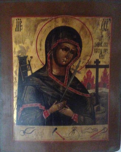 Icona russa raffigurante al centro dell'opera la Madre di Dio trafitta da una spada. A sinistra la scala appoggiata alla colonna con sopra il gallo e l'asta con la spugna. A destra la croce russa, sullo sfondo la città di Gerusalemme. Sulla striscia in basso, da sinistra: la tenaglia, i chiodi, il martello, il sacco dei trenta denari, la corona intrecciata di spine, la frusta. Nella tradizione cristiana sono detti strumenti della Passione, ovvero gli oggetti che furono usati per la crocifissione di Gesù.