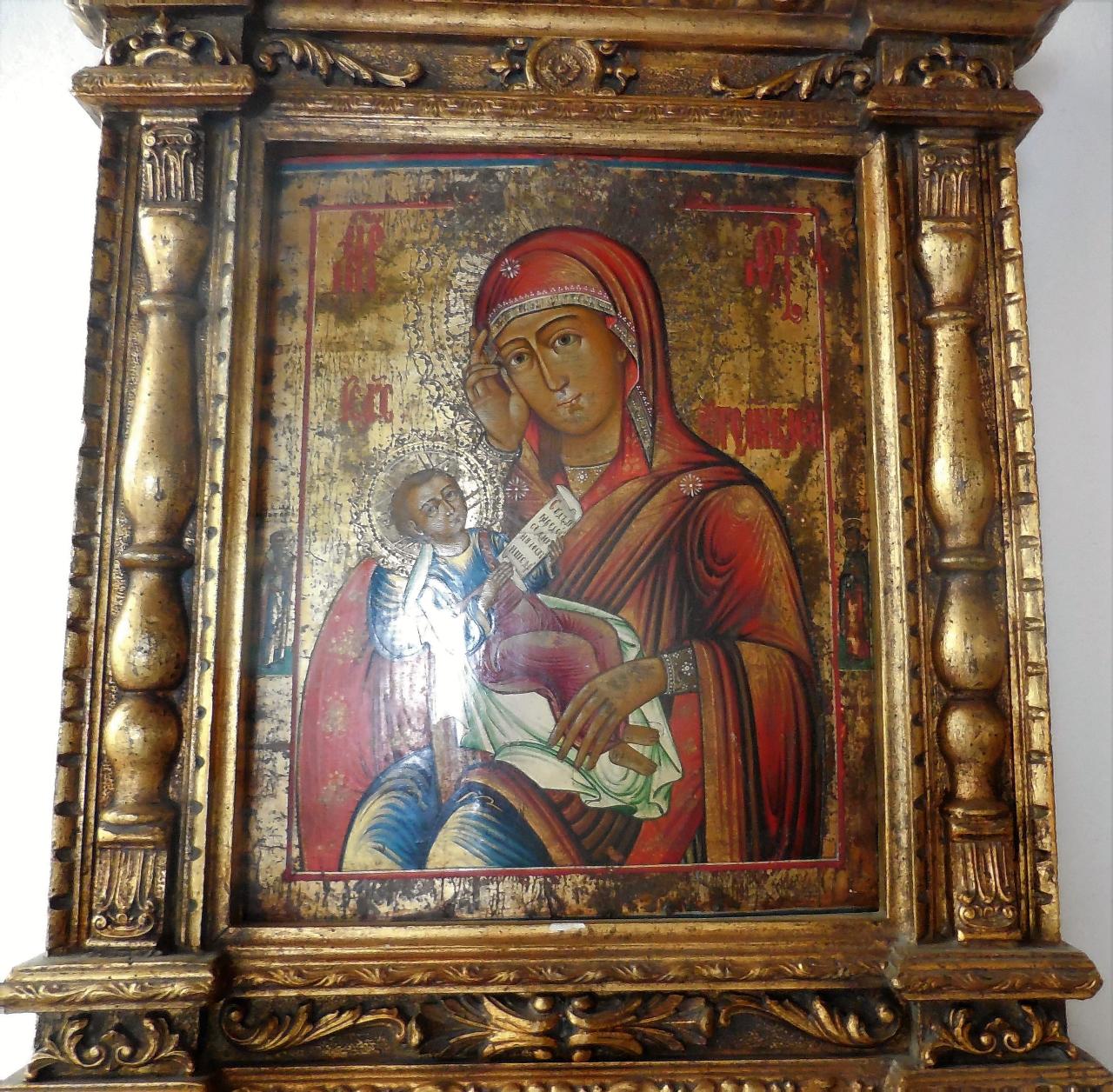 Icona russa raffigurante la Madre di Dio ritratta mentre porta la mano destra al viso con un atteggiamento di profonda mestizia, perché intuisce il futuro del Figlio che tiene in braccio, mentre questi indica la Scrittura: "Giudicate secondo giustizia, operate con misericordia e magnanimità". A destra e a sinistra sono raffigurati due santi non identificabili.