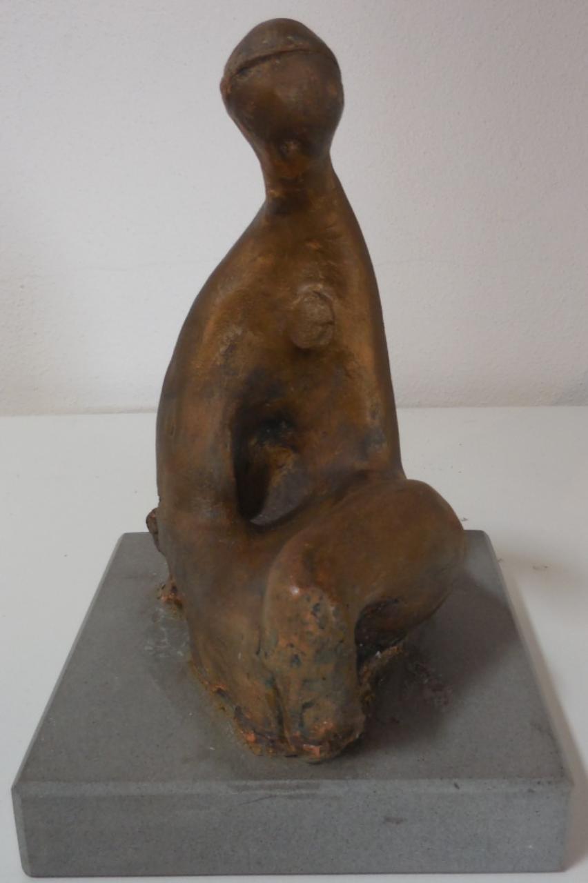 È una piccola scultura caratterizzata da una forma plastica di sintesi dove i particolari scompaiono per favorire il chiaroscuro che liberamente corre mettendo in evidenza le superfici lisce e tondeggianti. Nell’insieme la figura seduta è in atteggiamento meditativo. \nEstrema sintesi plastica.\n