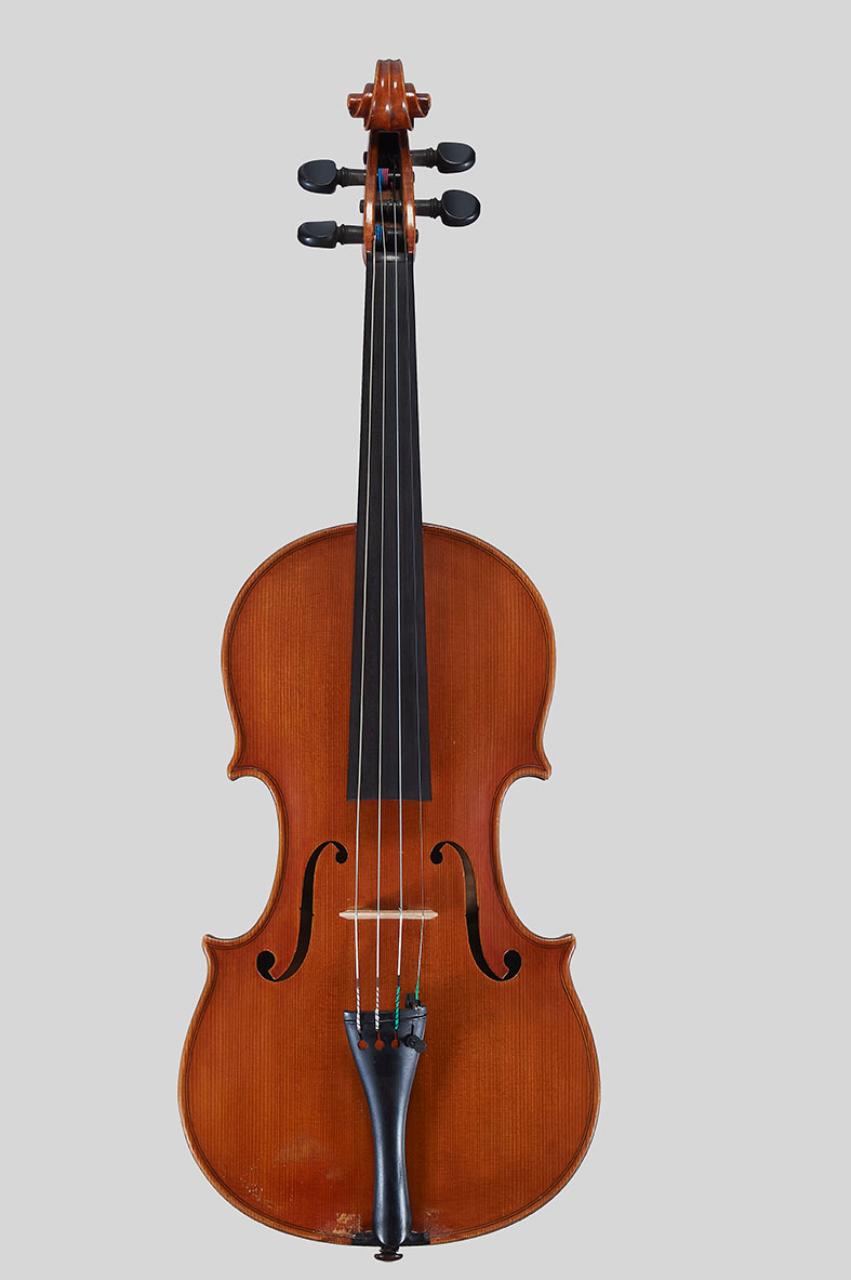 Violino di grande formato caratterizzato da un fondo costituito da due pezzi d'acero giuntati al centro con chiodini di allineamento in legno. La verniciatura si contraddistingue per un leggero sottofondo seguito da una vernice con tenui sfumature di colore. Il raccordo sguscia filetto ha un bordo ben arrotondato che conferisce morbidezza al profilo delle due tavole. Le effe, di ispirazione stradivariana, si presentano leggermente inclinate con tacche evidenti. Il ponticello non è originale, è stato sostituito in tempi non lontani.