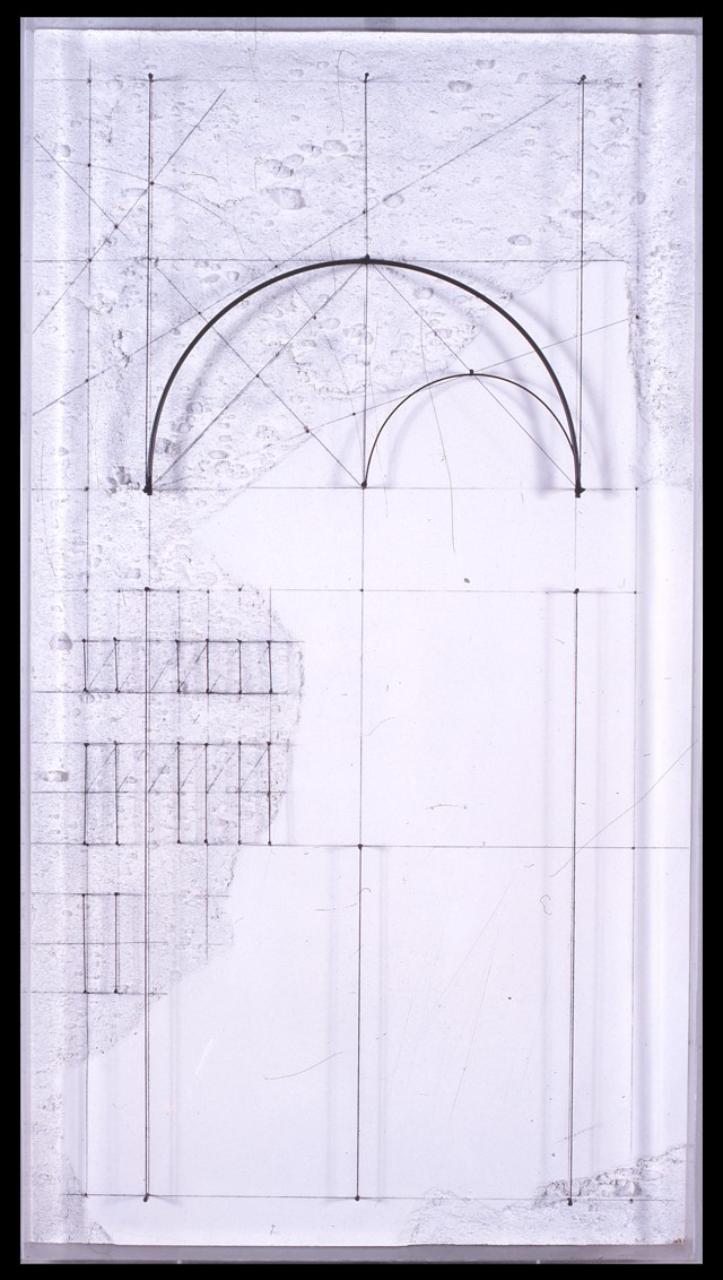 tavola/ tecnica mista polimaterica (fili, chiodi, cemento, plexiglass)
