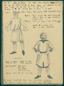 Figurini per costume di scena dello spettacolo "Il sacro mimo di Gerardo dei Tintori". costumi teatrali per popolano e artigiano