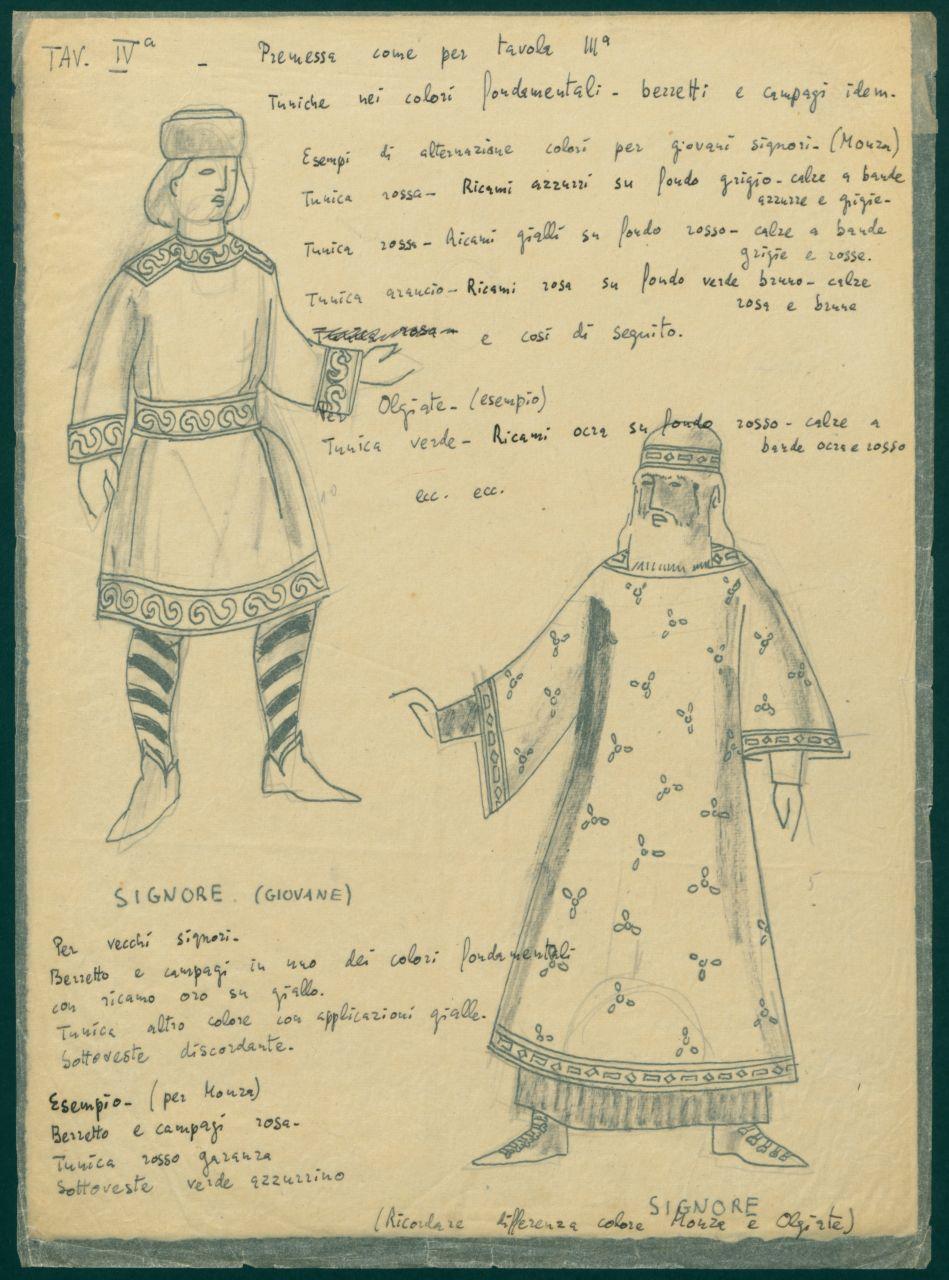Figurini per costume di scena dello spettacolo "Il sacro mimo di Gerardo dei Tintori". costumi teatrali per signore giovane e signore anziano