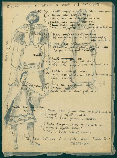 Figurini per costume di scena dello spettacolo "Il sacro mimo di Gerardo dei Tintori". costumi teatrali per i testimoni