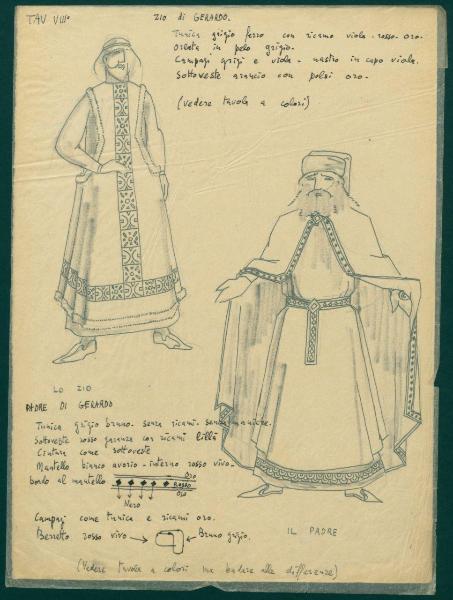 Figurini per costume di scena dello spettacolo "Il sacro mimo di Gerardo dei Tintori". costumi teatrali per lo zio e per il padre