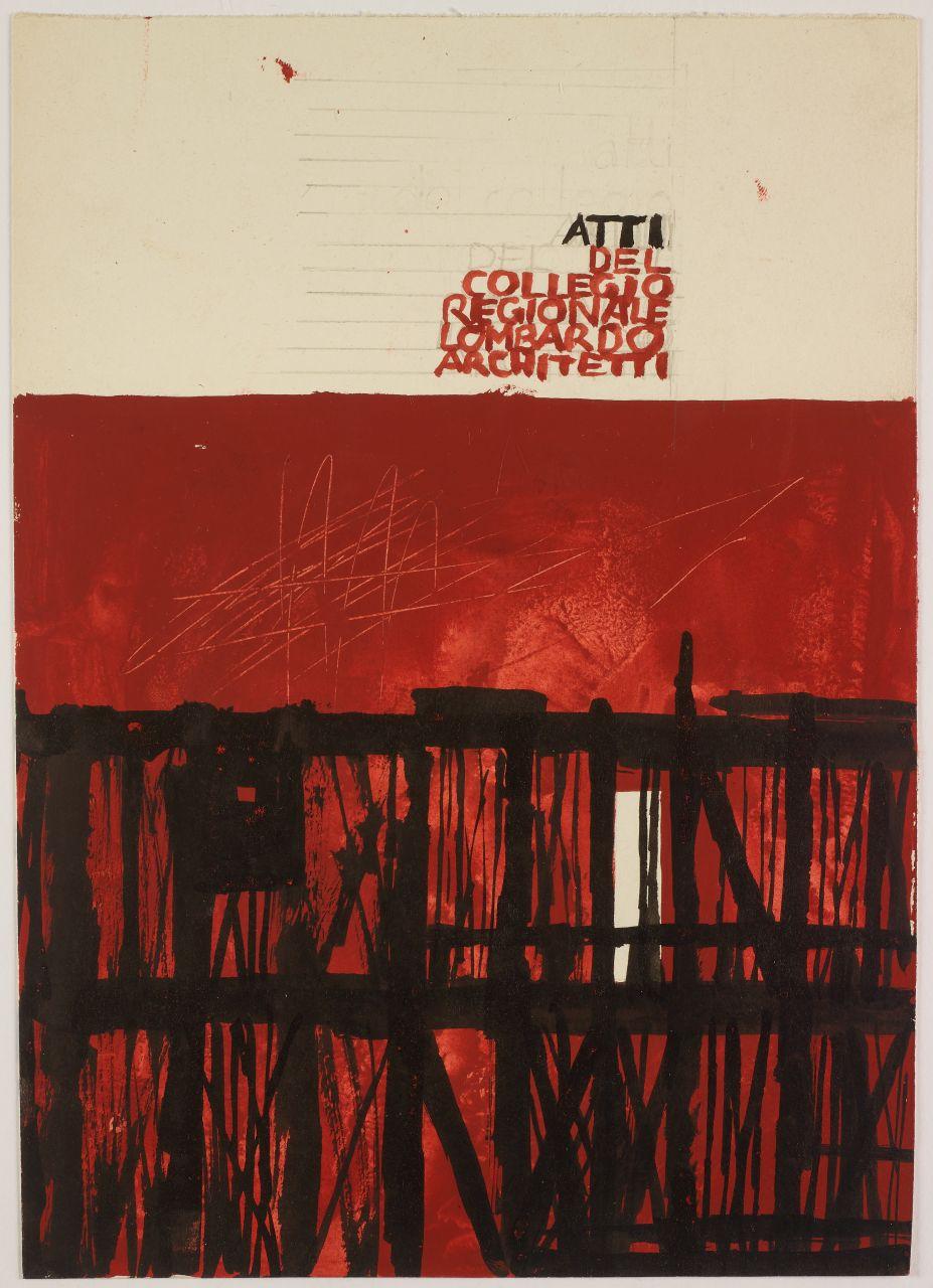 Studio per la copertina degli atti del Collegio Regionale Lombardo Architetti. composizione con struttura reticolata e iscrizioni