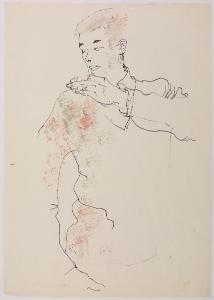 Bozzetto per l'illustrazione del pieghevole pubblicitario "Lettera allo studente" della società Olivetti. uomo a mezza figura