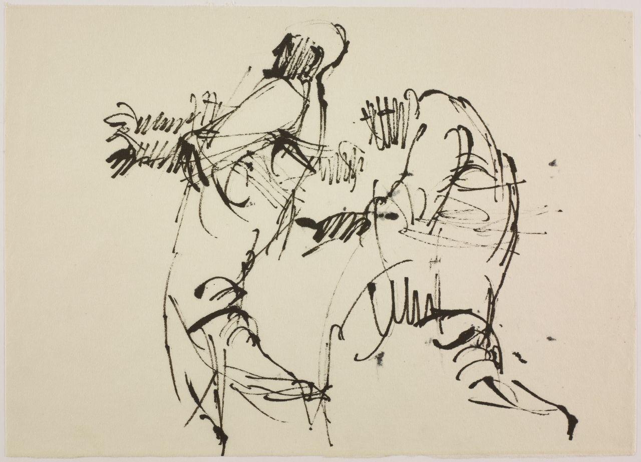 Disegno per mostra allestita alla Libreria Salto di Milano, 1961. figure umane in movimento