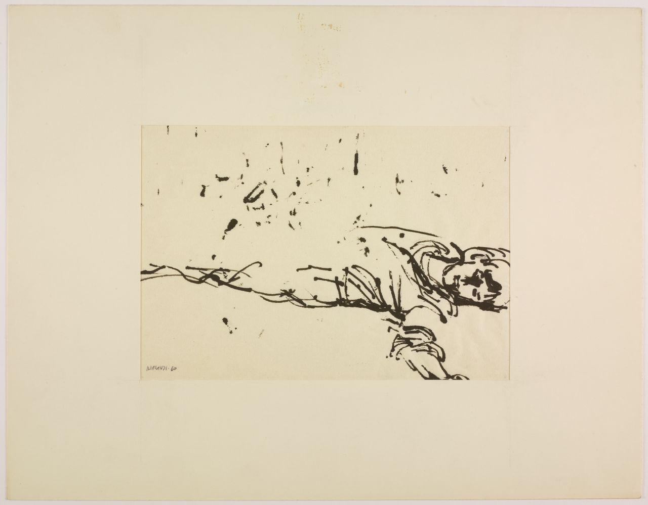 Disegno per mostra allestita alla Libreria Salto di Milano, 1961. uomo riverso a terra