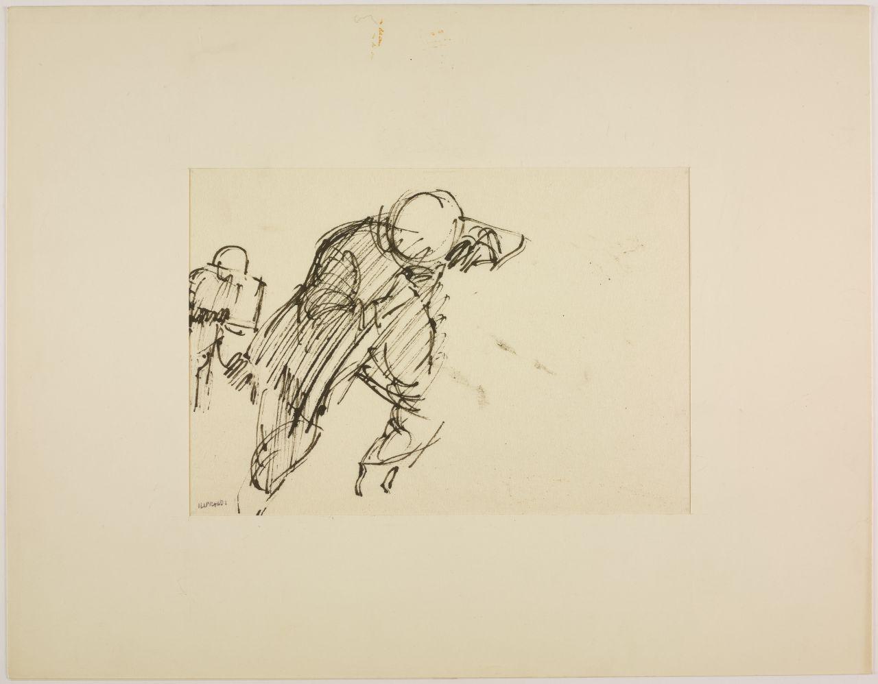 Disegno per mostra allestita alla Libreria Salto di Milano, 1961. militari in movimento