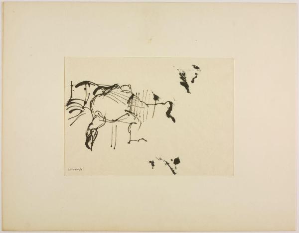 Disegno a inchiostro di china realizzato su foglio di carta di riso montato su passe-partout.