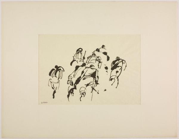 Disegno per mostra allestita alla Libreria Salto di Milano, 1961. militari in movimento