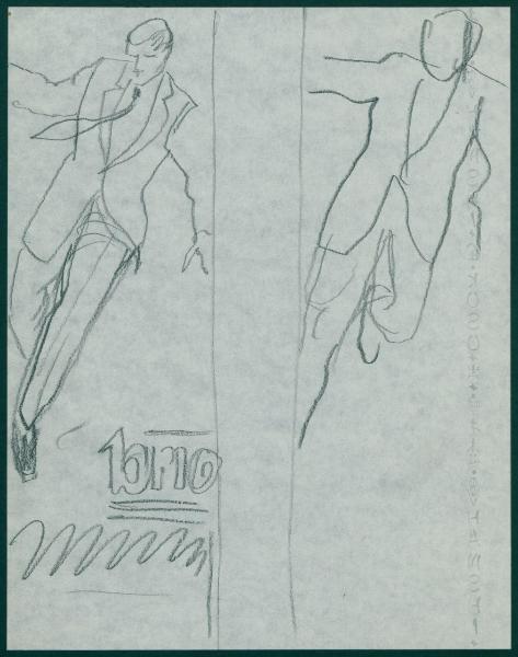 Studio per manifesto pubblicitario della società Marzotto. uomini in abiti eleganti in movimento