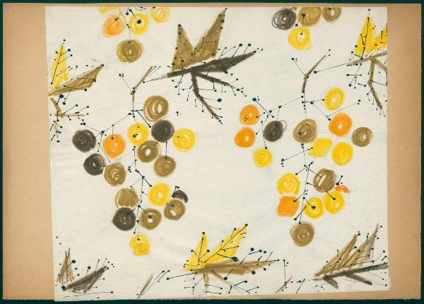Disegno per tappezzeria ai grandi magazzini la Rinascente. decorazione con grappoli d'uva per tappezzeria