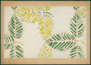 Disegno per tappezzeria ai grandi magazzini la Rinascente. decorazione con foglie per tappezzeria