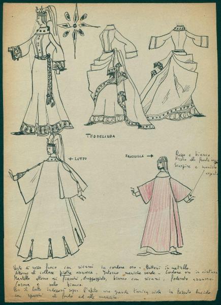 Figurini per costume di scena dello spettacolo" La leggenda di Flavia Teodelinda". costume per Teodolinda