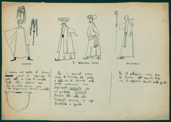 Figurini per costume di scena dello spettacolo" La leggenda di Flavia Teodelinda". costume per indovino, mercanti siriaci e pellegrino
