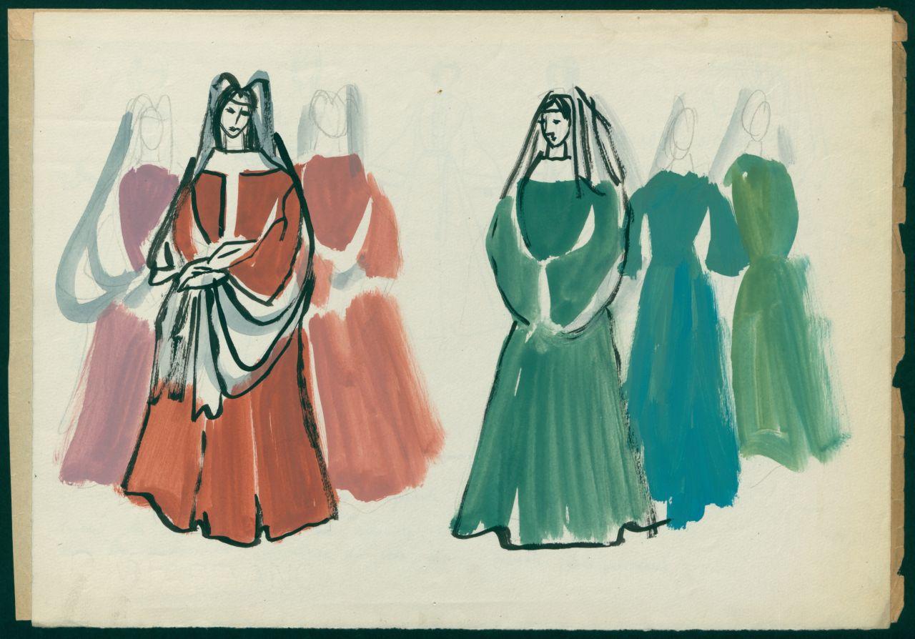 Figurini per costume di scena dello spettacolo" La leggenda di Flavia Teodelinda". costume per donne bavare e longobarde