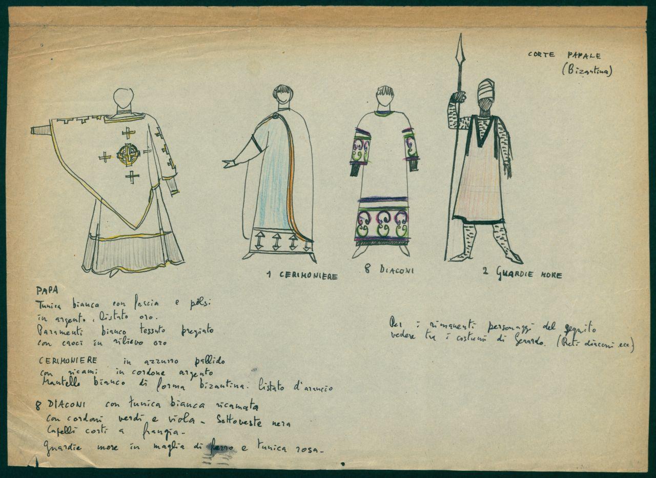 Figurini per costume di scena dello spettacolo" La leggenda di Flavia Teodelinda". costume per corte papale bizantina