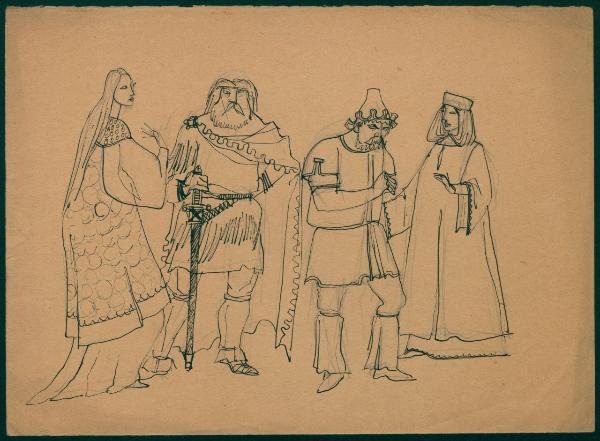 Figurini per costume di scena dello spettacolo" La leggenda di Flavia Teodelinda". costumi di scena