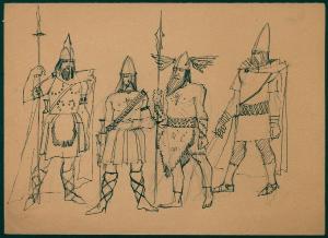Figurini per costume di scena dello spettacolo" La leggenda di Flavia Teodelinda". costumi di scena