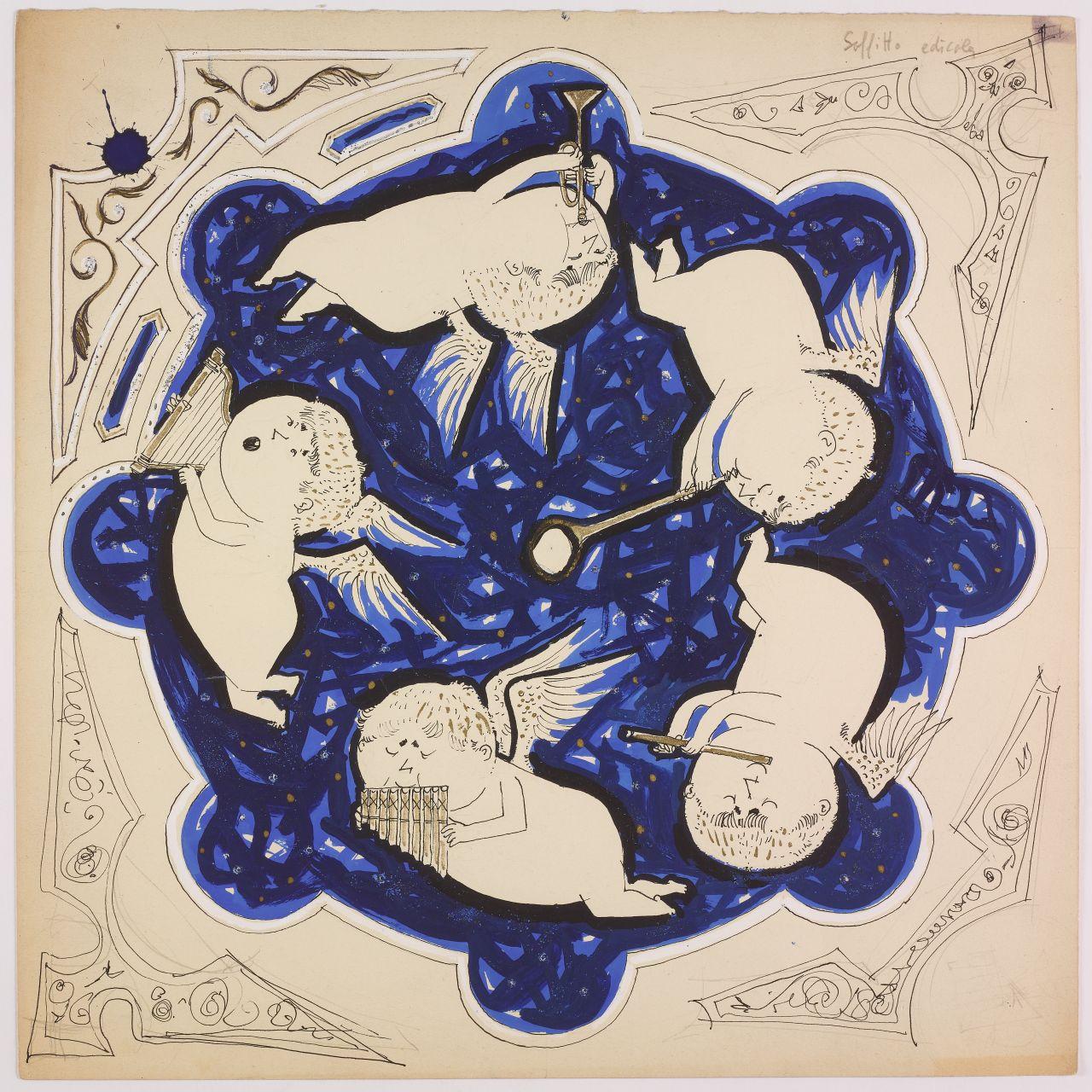 Bozzetto per l'allestimento di Natale ai grandi magazzini la Rinascente. decorazione con putti musici