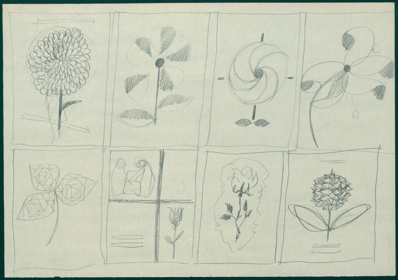 - NOTIZIE STORICO CRITICHE Schizzo eseguito da Giancarlo Iliprandi per la proposta di un manifesto per l'iniziativa "Fiori a Brera", che trasformò la Pinacoteca in un giardino grazie a la Rinascente, dal 29 aprile al 6 maggio 1956