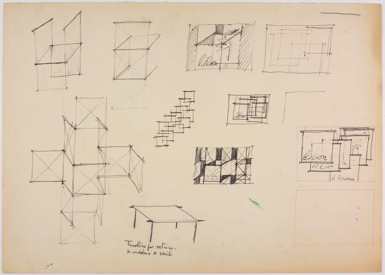 Disegno eseguito con inchiostro a penna e grafite su cartoncino con iscrizioni manoscritte.