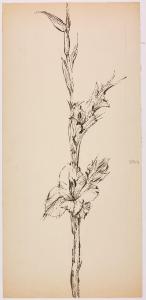 Disegno in bianco e nero eseguito con grafite e inchiostro di china su foglio di carta bianca.