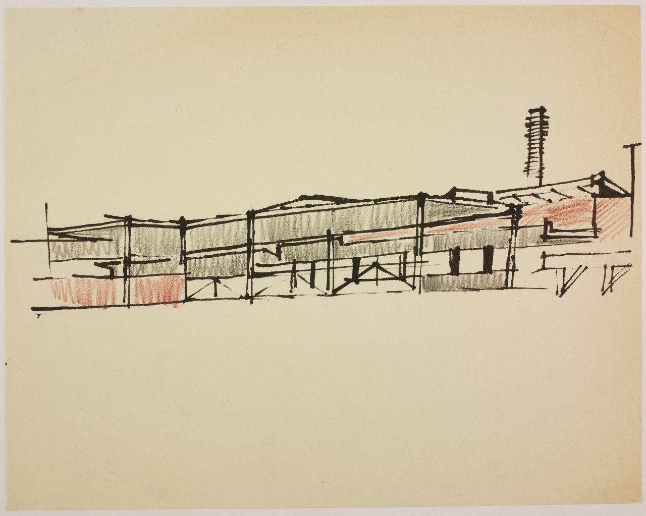 - NOTIZIE STORICO CRITICHE Nel gennaio 1958 Giancarlo Iliprandi espone i suoi dipinti della serie Case e cantieri alla Galleria dell'Ariete a Milano per cui viene pubblicato il ventinovesimo catalogo della Galleria con testo dell'amico e collega pittore Emilio Tadini. La pittura di Iliprandi registrava la rinascita e l'espansione urbanistica della Milano dell'immediato secondo dopoguerra, che Iliprandi segue con interesse, soprattutto riguardo la zona dove abita (via Ampere 55) allora interessata dal cantiere della nuova Facoltà di Architettura così come del palazzo di Gio Ponti in via Vallazze 63 dove il giovane acquista un appartamento e si trasferisce nel dicembre 1957.