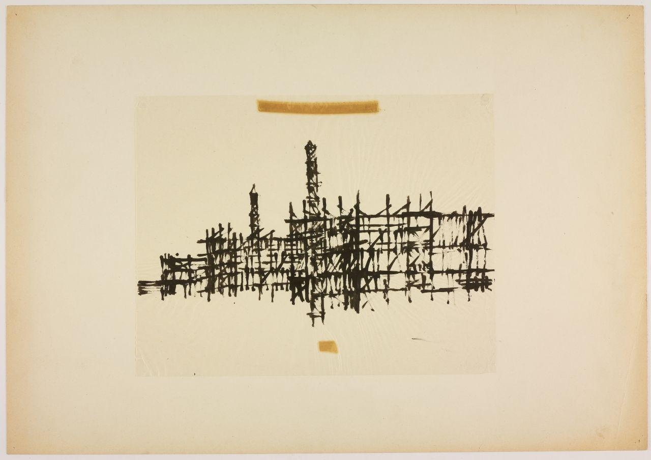 - NOTIZIE STORICO CRITICHE Nel gennaio 1958 Giancarlo Iliprandi espone i suoi dipinti della serie Case e cantieri alla Galleria dell'Ariete a Milano per cui viene pubblicato il ventinovesimo catalogo della Galleria con testo dell'amico e collega pittore Emilio Tadini. La pittura di Iliprandi registrava la rinascita e l'espansione urbanistica della Milano dell'immediato secondo dopoguerra, che Iliprandi segue con interesse, soprattutto riguardo la zona dove abita (via Ampere 55) allora interessata dal cantiere della nuova Facoltà di Architettura così come del palazzo di Gio Ponti in via Vallazze 63 dove il giovane acquista un appartamento e si trasferisce nel dicembre 1957.