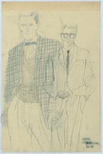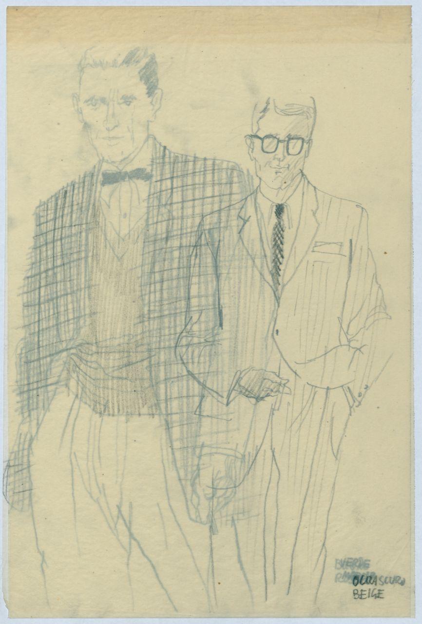 Bozzetto di moda maschile per i grandi magazzini la Rinascente. uomini con completo classico e spezzato