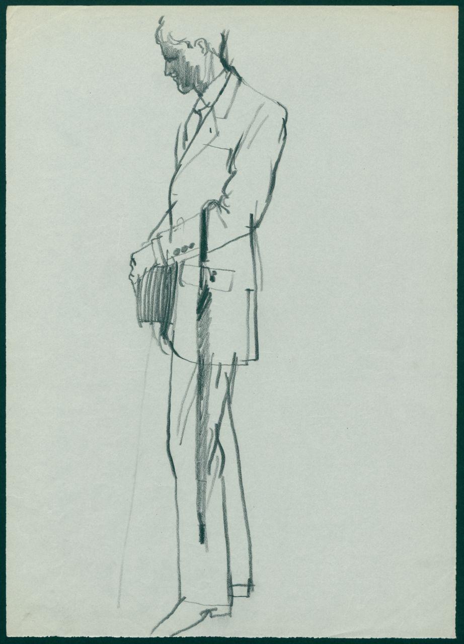 - NOTIZIE STORICO CRITICHE Nel 1955 Giancarlo Iliprandi entra a far parte dell'Ufficio pubblicità de la Rinascente, diretto dall'architetto Carlo Pagani. L'Ufficio pubblicità de la Rinascente è stato un punto di riferimento professionale per grafici, designer, fotografi e addetti alla comunicazione sia italiani che internazionali. Insieme a Iliprandi troviamo i nomi di Max Huber, Pino Tovaglia, Albe Steiner, Lora Lamm, Carla Gorgerino e Pegge Hopper. La lunga collaborazione di Iliprandi con La Rinascente lo vede inizialmente coinvolto negli allestimenti di vetrine e reparti sia per le manifestazioni stagionali ricorrenti (Estate, Scuola, Fiera del Bianco, Natale e altre) sia per gli eventi espositivi d'eccezione come le mostre mercato dedicate ai prodotti di una specifica nazione (Spagna, 1955 e Italia, 1956). Il suo intervento oggi più ricordato è quello legato alla moda maschile con la grafica del catalogo "Uomo la Rinascente Moda maschile" dove Iliprandi utilizza il disegno e il racconto fotografico. Un doppio registro che si ritrova anche negli annunci pubblicitari per i quotidiani che dalla sede di Milano venivano declinati anche per le altre sedi nazionali (Cagliari, Catania, Genova, Napoli, Roma). Da un'intervista rilasciata dal grafico milanese a Michele Sacco nel 1982 si evince come la Rinascente sia stata per Iliprandi "una palestra tecnica con infinite possibilità creative" e come nello specifico il settore Uomo Moda maschile sia stato il luogo in cui è riuscito a "esprimere intenzioni grafiche senza incomprensioni o limitazioni". https://archives.rinascente.it