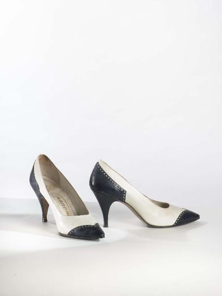 Elegante paio di scarpe femminili col tacco, n. 38, in pelle bicolore e cuoio.