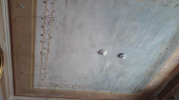- NOTIZIE STORICO CRITICHE Si tratta di una decorazione tipica delle case borghesi di campagna, con un carattere elegante e semplice allo stesso tempo.\n\nIl restauro delle parti decorative interne dipinte ha seguito un criterio molto conservativo: il degrado delle superfici non è stato completamente eliminato ma bloccato con il trattamento minimo delle pareti, che hanno mantenuto la patina del tempo.
