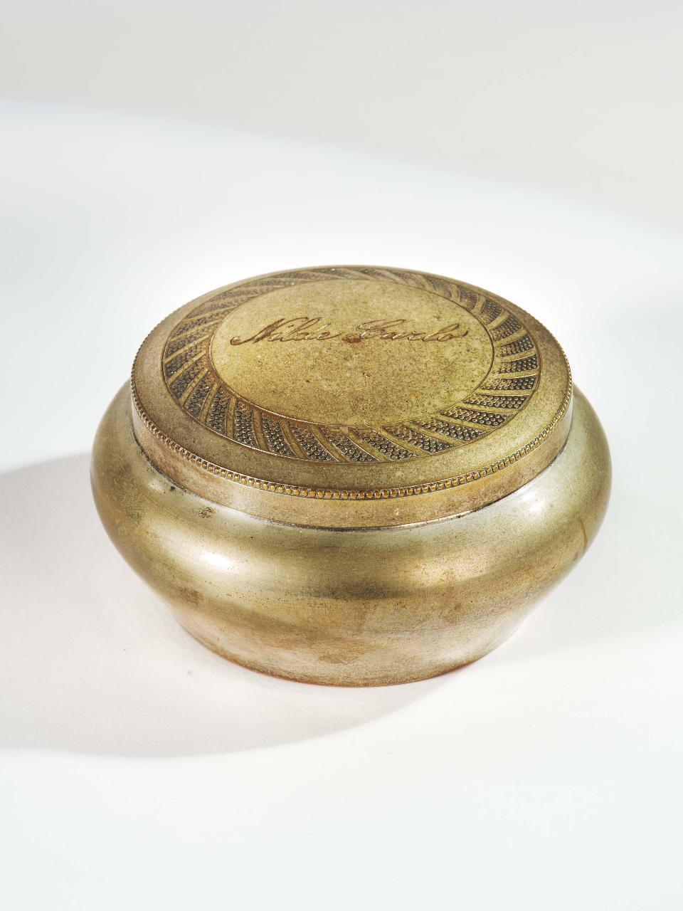 - NOTIZIE STORICO CRITICHE Scatola realizzata nel 1922 dall'argentiere milanese Garampelli in occasione del matrimonio tra Carlo Macchi (1896-1979) e Leonilde Monti (1897-1979) di Borgomanero.