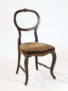 - NOTIZIE STORICO CRITICHE La poltroncina si rifà allo stile Luigi Filippo.\n\nPeriodo Luigi Filippo (1830-1848)\nLo stile Luigi Filippo si sviluppa in un contesto contraddistinto da due fattori principali: l'espansione della borghesia e l'avvento dell'industrializzazione dei processi produttivi.\nQuesto stile quindi fronteggia il declino degli artigiani e le nuove esigenze di economicità e comodità.\nEsteticamente riprende elementi dal passato, soprattutto dal Gotico e dal Rinascimento, prediligendo forme molto curve per gli schienali delle sedute, gambe e piedi a capriolo, con una decorazione molto ricca.\nUtilizza prevalentemente legni scuri: ebano, palissandro e mogano, affiancati per contrasto a elementi chiari.