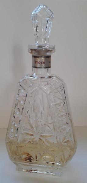 Bottiglia con tappo in vetro stampato con motivi decorativi in rilievo della ditta Stock.