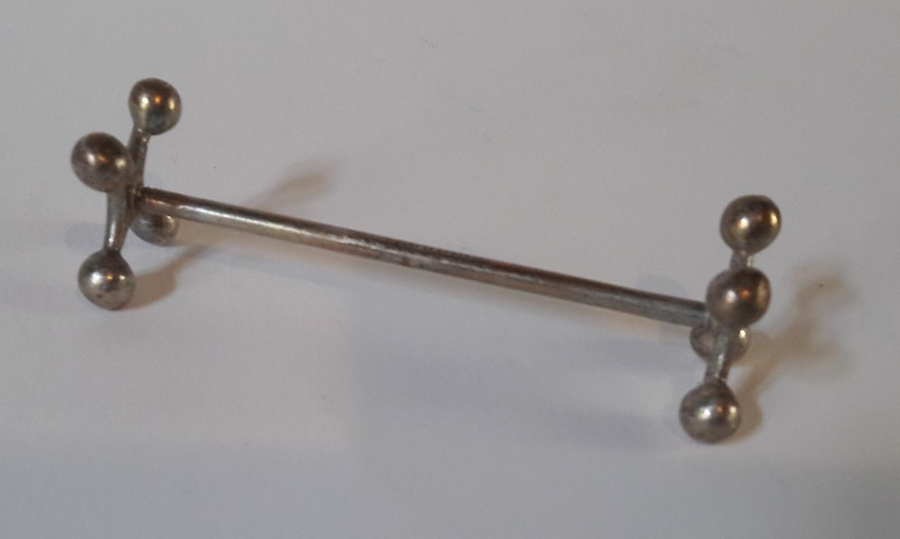 Raffinati poggia posate realizzati in metallo argentato: questi supporti sono utilizzati principalmente per appoggiare coltelli o altre posate durante i pasti, evitando che queste tocchino direttamente la tovaglia o la superficie del tavolo, mantenendo così la pulizia.\nHanno un design semplice e funzionale, ma hanno eleganza. Ogni poggia posate ha una struttura orizzontale composta da un'asta centrale dritta, sostenuta da due supporti a forma di "X" alle estremità. Questi supporti sono arricchiti con delle sfere che donano stabilità e un aspetto decorativo all'oggetto.