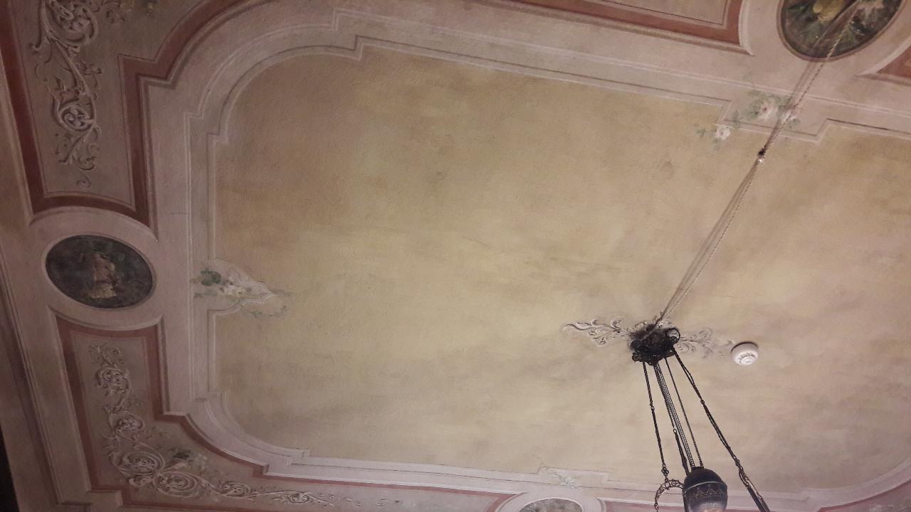 - NOTIZIE STORICO CRITICHE Si tratta di una decorazione tipica delle case borghesi di campagna, con un carattere elegante e semplice allo stesso tempo.\n\nIl restauro delle parti decorative interne dipinte ha seguito un criterio molto conservativo: il degrado delle superfici non è stato completamente eliminato ma bloccato con il trattamento minimo delle pareti, che hanno mantenuto la patina del tempo.\n
