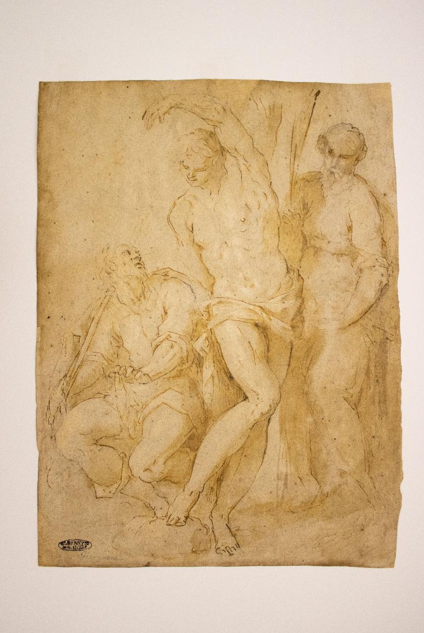 Il disegno ritrae San Sebastiano legato ad un albero. \nEgli è raffigurato seminudo, intorno a lui si trovano due personaggi maschili, autori del suo martirio per volere dell'imperatore Diocleziano.