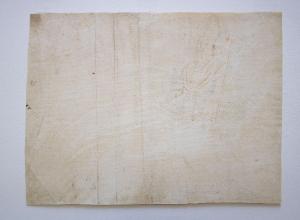 Il foglio è disegnato solo sulla parte destra dove si scorge uno studio di vescovo a mezzo busto con indosso la mitra mentre tiene il pastorale sulla mano sinistra ed alza la mano destra in segno di benedizione; lo sguardo è rivolto verso l'alto. Ad incorniciare il suo capo vi è un'aureola appena visibile.