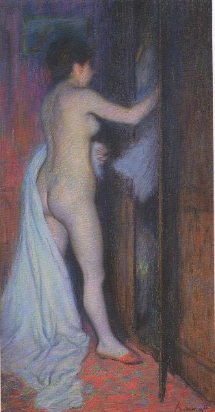 - NOTIZIE STORICO CRITICHE Il pastello, noto come Dopo il bagno, ma il cui titolo originale è La Toilette (così come è indicato nella foto n. 2930 dell'archivio Durand-Ruel), fu esposto alla Biennale veneziana del 1914 (n. 27), in occasione della mostra personale dell'artista, fortemente voluta da Angelo Sommaruga e curata da Vittorio Pica, e poi ancora alla "Mostra commemorativa della Fondazione della Biennale" nel 1935.\nPer affinità di tratto, La toilette è vicina, a La roussotte, opera datata al 1888 e dovrebbe quindi risalire allo stesso periodo.