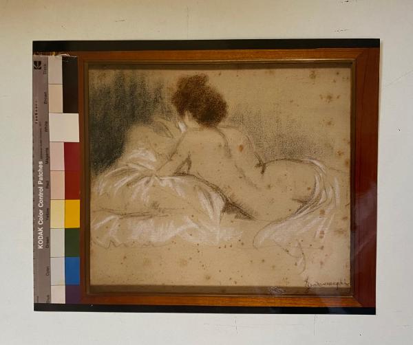 - NOTIZIE STORICO CRITICHE Zandomeneghi è stato certamente il pittore prediletto dei coniugi Morone, che hanno collezionato ben 14 opere dell'artista. L'opera in esame è realizzata a pastello e carboncino. Un'opera di soggetto simile è stata esposta nel 1886 all'ultima mostra impressionista, caratterizzata dalla stesso soggetto e dalla delicatezza della linea. Quella in oggetto potrebbe quindi essere uno studio preparatorio al dipinto. Il sensuale naturalismo di origine veneta è evocato nell'opera di Zandomeneghi, e contrasta con l'asprezza delle opere di Degas dello stesso soggetto.