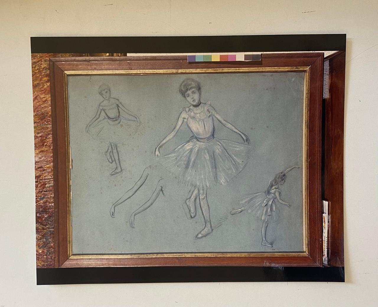 - NOTIZIE STORICO CRITICHE Zandomeneghi è stato il pittore prediletto dei coniugi Morone, che hanno collezionato ben 14 opere dell'artista. L'opera in esame è realizzata a pastello e carboncino su carta azzurra. Nonostante il tema sia stato ampiamente indagato da Degas, la ricerca di Zandomeneghi è autonoma, per lo studio di diversi dettagli delle pose delle ballerine, per la precisione descrittiva degli abiti e per l'impianto disegnativo, esaltato dai rialzi a pastello bianco e dal leggero sfumato. \n