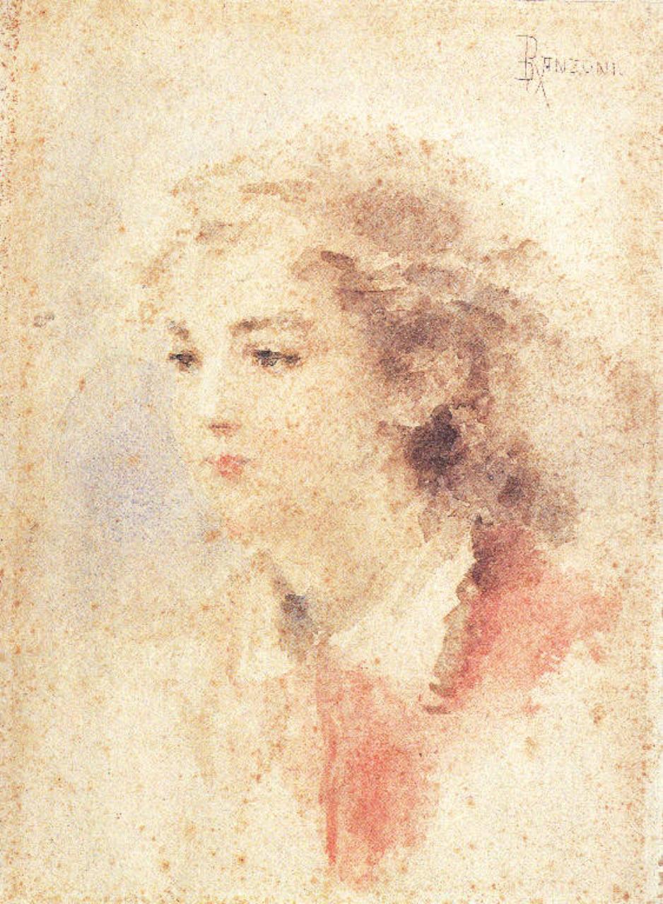 - NOTIZIE STORICO CRITICHE L'opera testimonia l'altissimo livello stilistico raggiunto da Ranzoni: il volto della giovinetta è tratteggiato con grande delicatezza e leggerezza di tocco: ciò conferma la grandezza dell'artista come acquarellista.\nRanzoni viene introdotto nell'ambiente scapigliato da Tranquillo Cremona, con il quale lavora ed espone di frequente, dividendo onori e critiche. In questi anni, Ranzoni produce opere dalla luminosa e felice tavolozza, dalla sensibile fluidità e intensità sentimentale nell'interpretazione del soggetto.