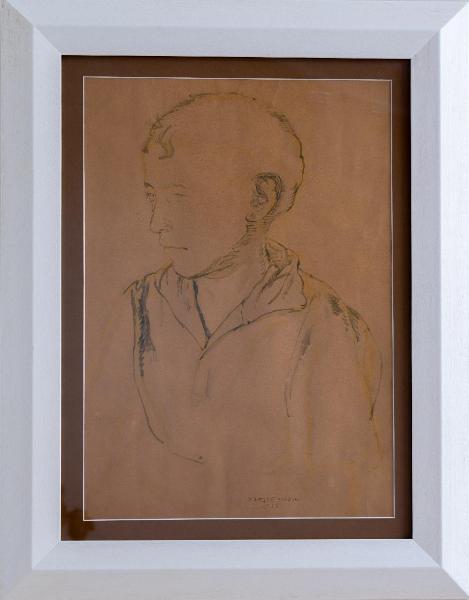 - NOTIZIE STORICO CRITICHE Il ritratto eseguito da Marini è quello di Antonio Mattioli, nato a Castiglione delle Stiviere il 28 gennaio del 1946, poi seminarista e sacerdote dal 1970. Il suo primo incarico era stato di curato ad Ostiglia che mantenne fino al 1980, anno in cui fu trasferito, per i successivi 18, nella parrocchia di Lunetta-Frassino. Nel 1998 fu incaricato di guidare l’importante parrocchia di Castel Goffredo, fino a quando, nel 2009, divenne Rettore del seminario vescovile di Mantova e dal 2017 Canonico e collaboratore del Duomo di Mantova. Indebolito dalla malattia, nel 2019 era tornato a Castel Goffredo, dove muore il 21 marzo 2020. Don Antonio è stato il principale promotore, insieme con Corrado Bocchi, dell’associazione onlus Gruppo San Luca di Castel Goffredo che ha progettato e aperto al pubblico nel 2017 il MAST Castel Goffredo – museo della Città, dedicato all’arte e alla storia del territorio. Marini, di origini castellane, ritrae un giovane Antonio, all’epoca undicenne. C1ome per altri artisti contemporanei, il disegno di Marini è quasi completamente autonomo dalla pittura: sono infatti rari i disegni preparatori di quadri. Inoltre nel disegno, che è iniziato prima della pittura ed è finito dopo – gli ultimi disegni sono del 1975 ca. – emerge un panorama più vasto di interessi e linee di ricerca. Altra caratteristica di Marini è che non si sa dove finisca il disegno e inizi la pittura, tanta è la gradualità tra segno puro, ricerca tonale realizzata solo con il bianco e nero, guazzi di china e, come nel caso del disegno in esame, con acquarelli. Marini si preoccupa di mantenere la purezza di tono e colore, per arrivare alla forma semplice delle cose, e di spogliare la composizione di tutto ciò che è superfluo e descrittivo per fare emergere l’idea fondamentale.