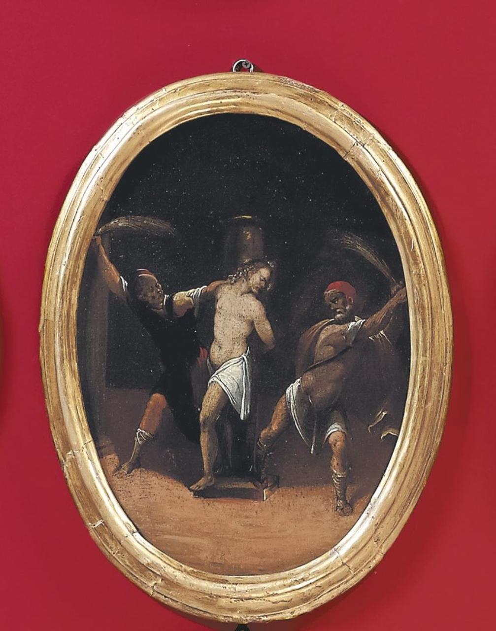 Personaggi: Cristo, Flagellatori. Abiti: (Cristo) panneggio, (Flagellatori) armature, mantelli. Oggetti: colonna, flagelli.