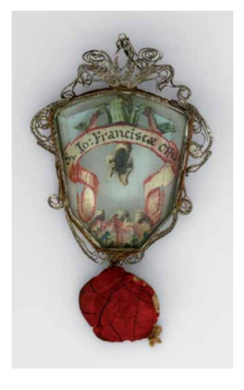 Fregi e incisioni: cornice modanata a riccioli. Iscrizioni sulle cedule: al recto «S: Francisci Sal. E.», al verso «S. Io. Franciscæ Ch.».